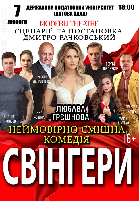 Спектакль "Свингеры" состоится 7 февраля 2026, 18:00, суббота в Государственный налоговый университет (актовый зал). С помощью сервиса internet-bilet.ua, Вы сможете с легкостью забронировать, заказать и купить билеты на интересующий Вас концерт, спектакль, оперу, балет, мастер-классы, спортивные и детские мероприятия, оплатив их самым удобным для Вас способом: через интернет банковской картой VISA/MasterCard, наличными или курьером, если сделаете заказ билета c доставкой.